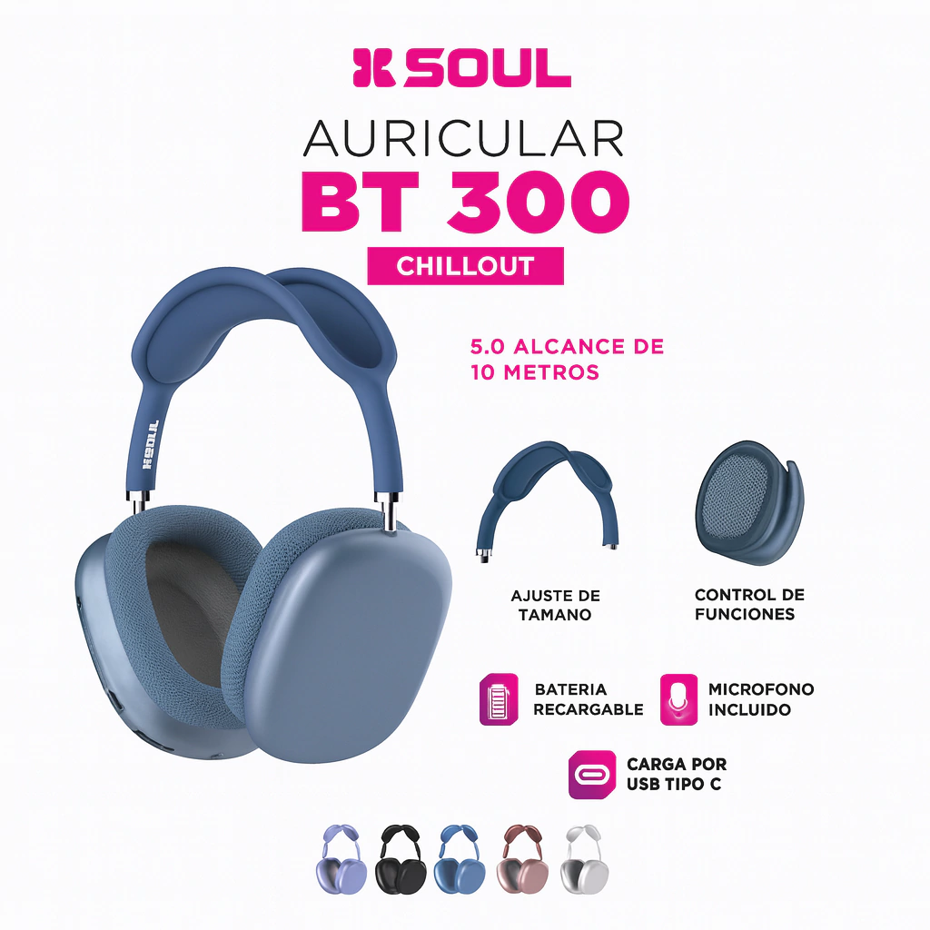 Disfruta de tu música favorita con los Auriculares Bluetooth BT300 Chill Out Multicolor. Diseñados para ofrecer una experiencia auditiva excepcional, estos auriculares cuentan con conectividad Bluetooth para una mayor libertad de movimiento.